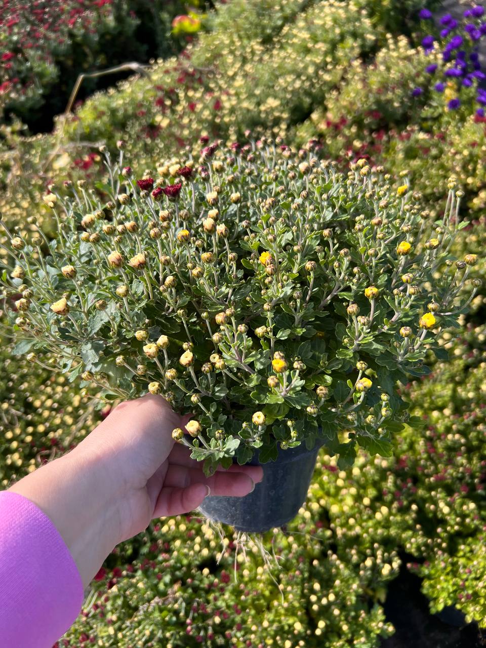 Хризантема-мультифлора Skyfall в одному горщику мікс 3 кольори, червоний, білий і жовтий