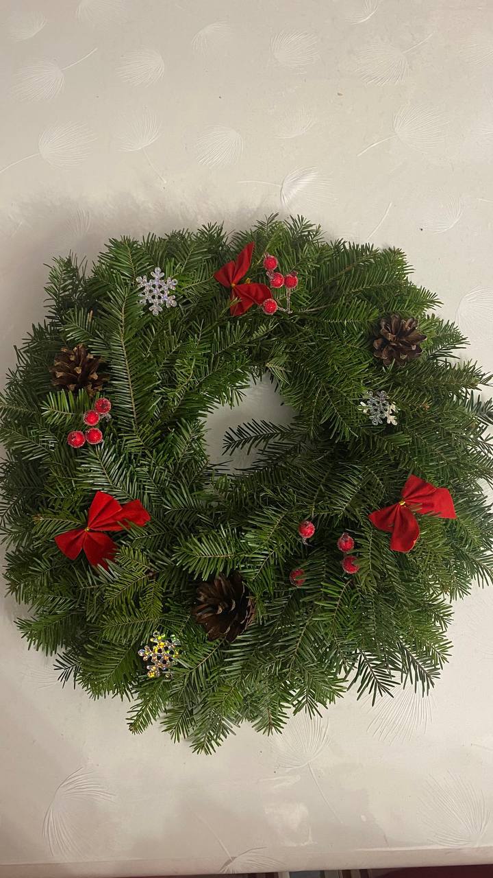 / Рідзвяний віночок з живої ялиці з декором, діаметр 50 см